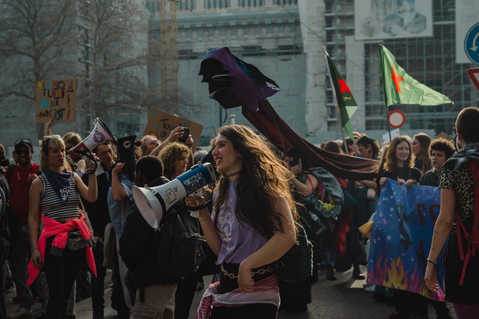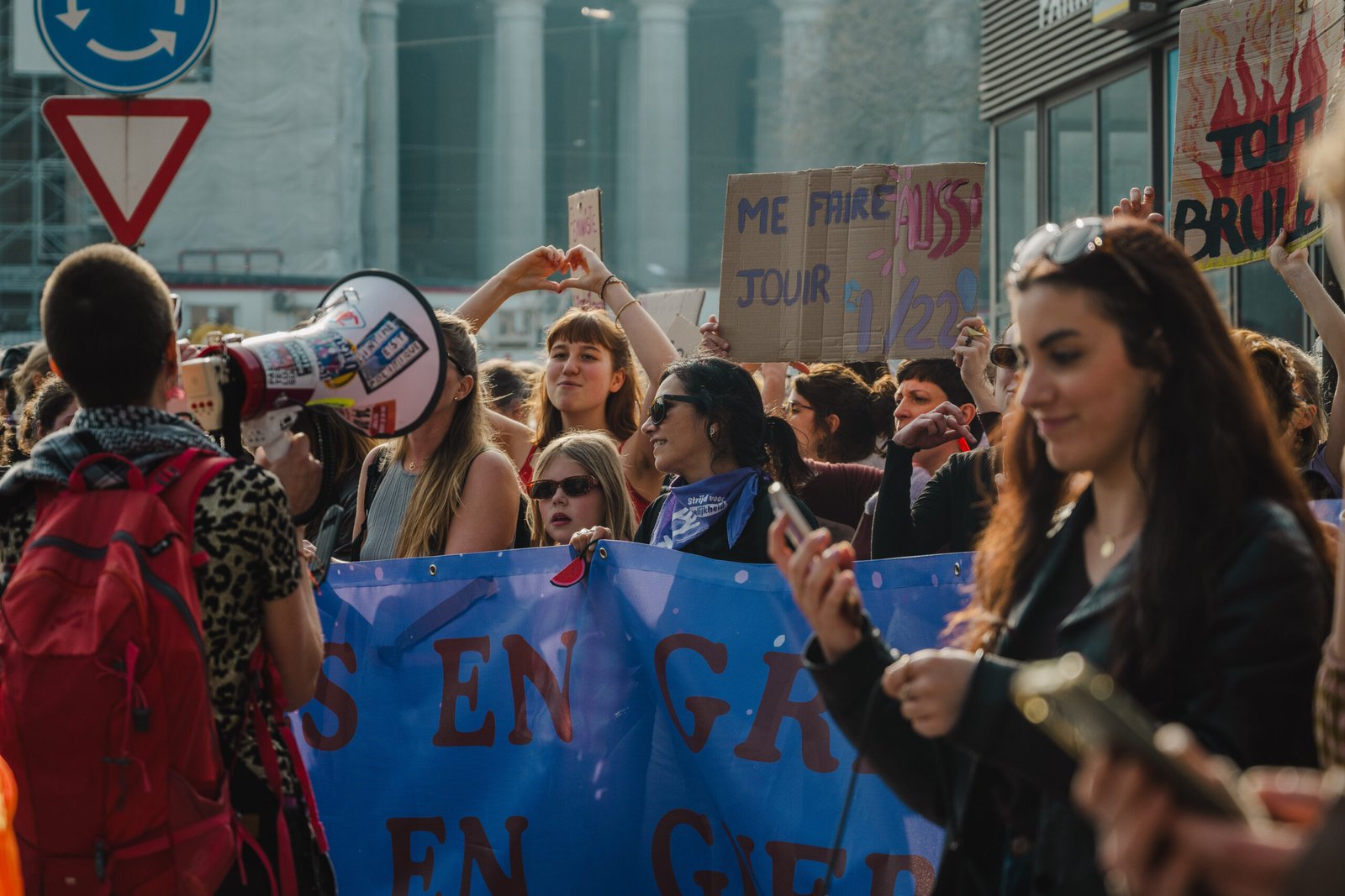 Naar jaarlijkse gewoonte vulde afgelopen zondag de altijd kleurrijke en muzikale Vrouwenmars de straten van Brussel. Het was immers 8 maart en dat is Internationale Vrouwendag. Enkele duizenden betogers kwamen op straat voor vrouwenrechten en tegen seksueel geweld en intimidatie. Opvallend in de speeches en slogans was de kritiek op de Federale Regering, in het bijzonder hun pensioenplannen, en solidariteit met vrouwen elders in de wereld, zoals Iran en Palestina. De leuzen “solidarité avec les femmes du monde entier” en “siamo tutti antifascisti” galmden het vaakst door de straten. Twee Ketterfotografen liepen mee en kozen hun favoriete beelden uit.